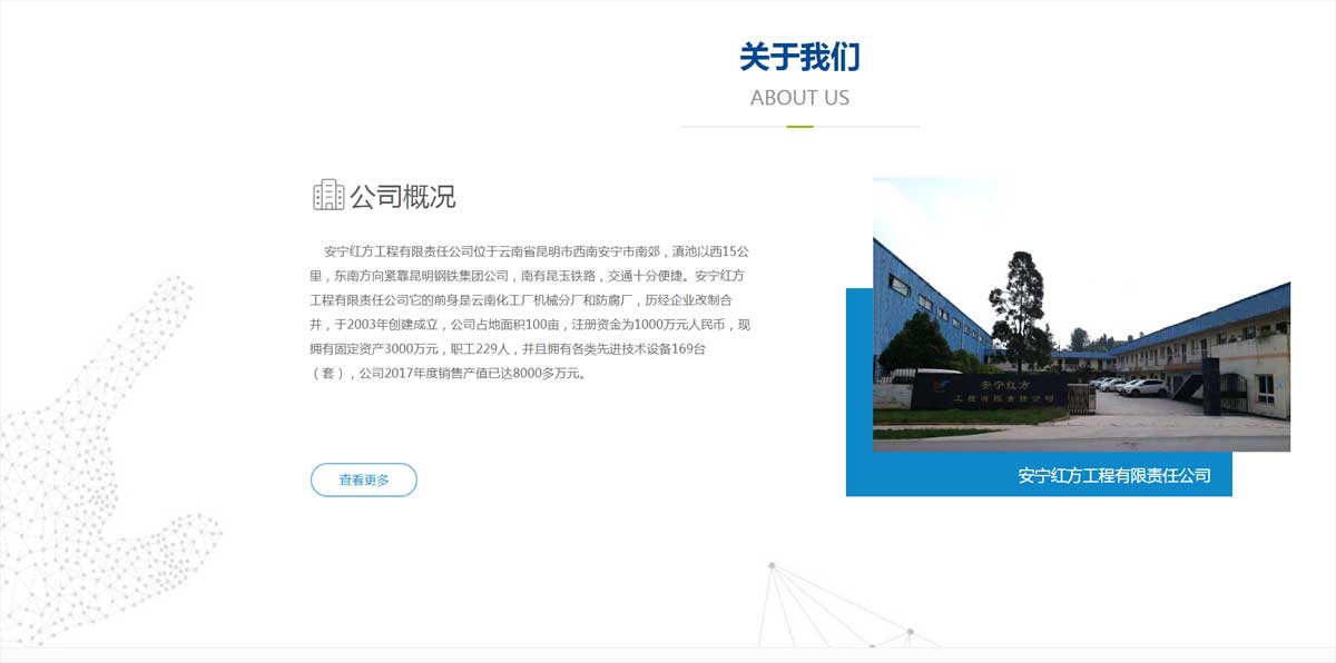 安寧紅方工程有限責任公司它的前身是云南化工廠機械分廠和防腐廠,歷經(jīng)企業(yè)改制合并,于2003年創(chuàng)建成立,公司占地面積100畝,注冊資金為1000萬元人民幣,現(xiàn)擁有固定資產(chǎn)3000萬元,職工229人,并且擁有各類先進技術(shù)設備169臺(套),公司2017年度銷售產(chǎn)值已達8000多萬元。